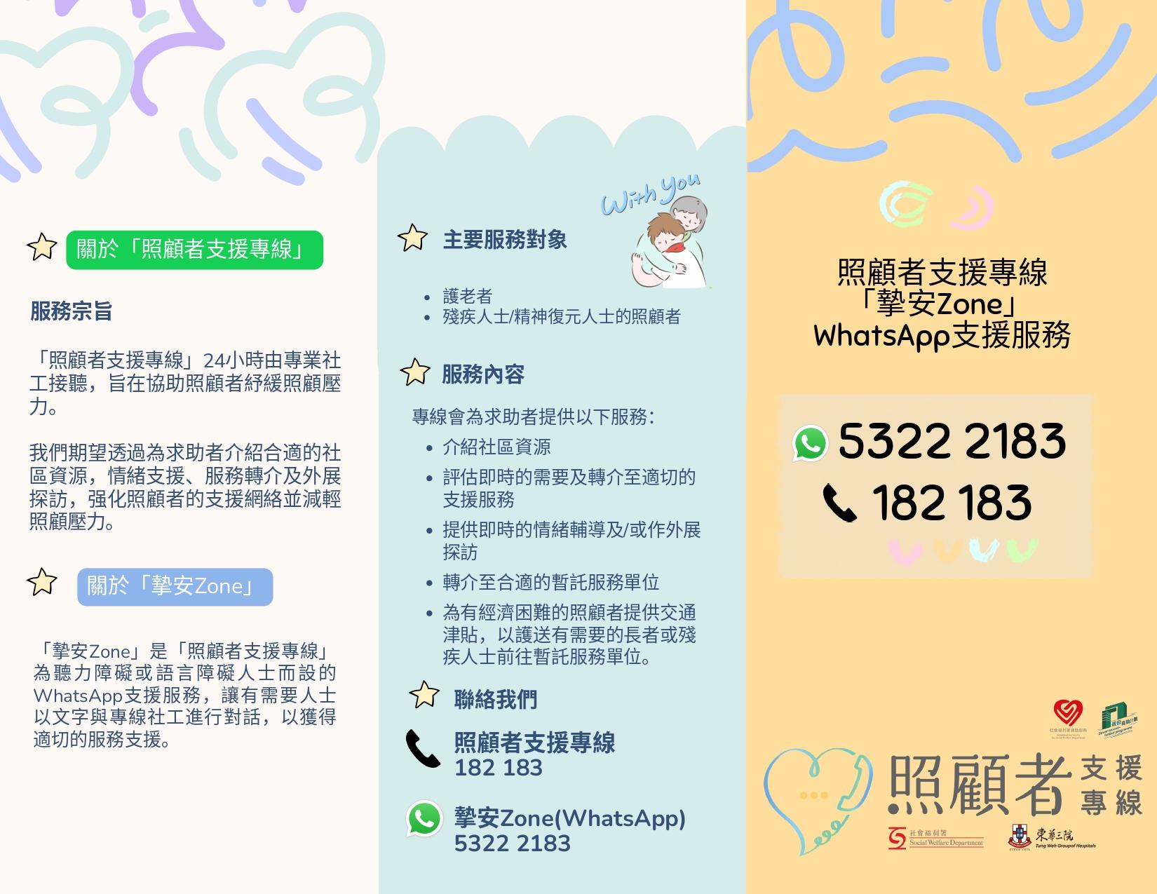 資訊是由照顧者⽀援專線提供服務詳情可到相關網站查閱: https://carerhotline.tungwahcsd.org/